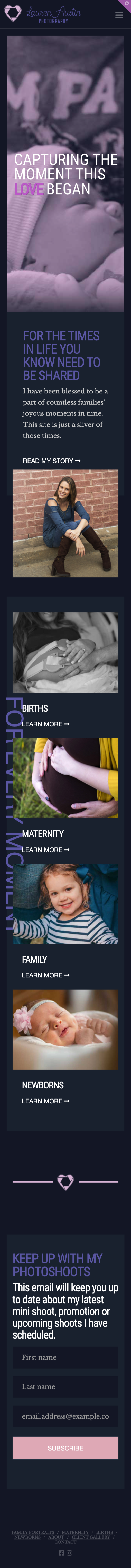 With the heart of the brand being an actual heart. I chose to align the copy, as well. Each category of photography speak to how Lauren connects with those memories, and allows them to be a moment forever in the customers’ heart.