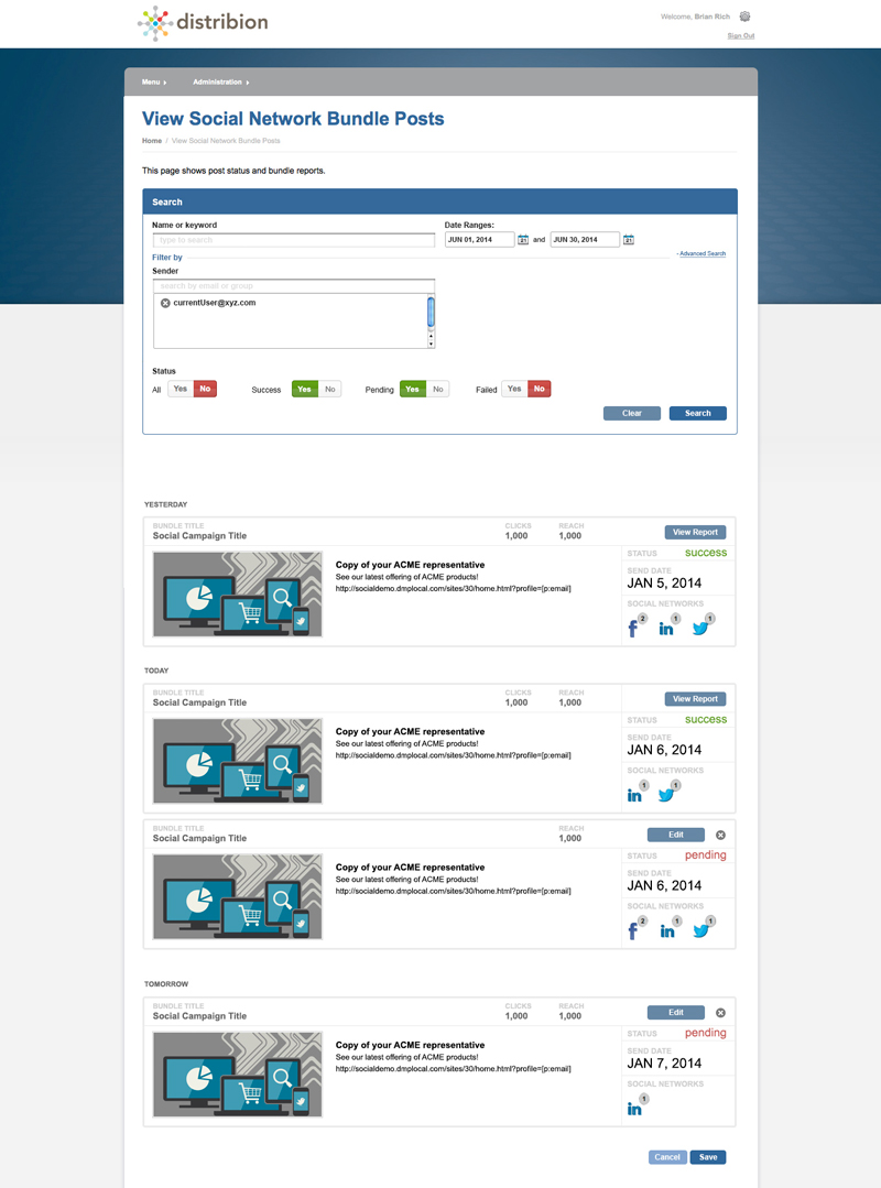 With Distribion’s platform marketers could schedule their own marketing social media post, as well as, email marketing based on information put in their profile.